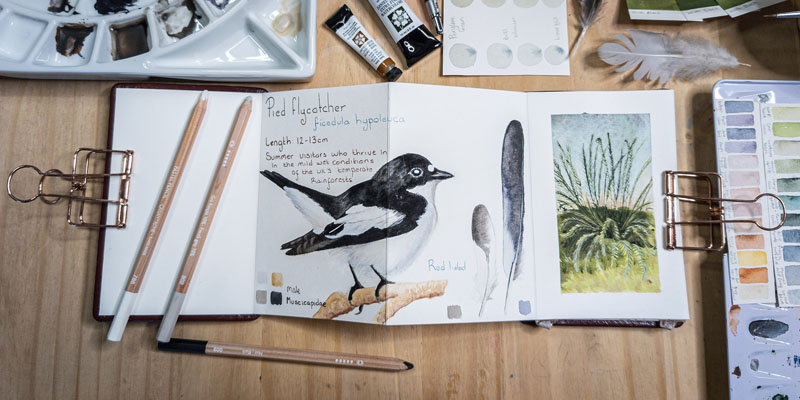 And speaking of paintings of birds, while I’ve done a number this year, my very first bird of 2025 is also having its moment in the Springwatch spotlight – the pied flycatcher (Ficedula hypoleuca)!