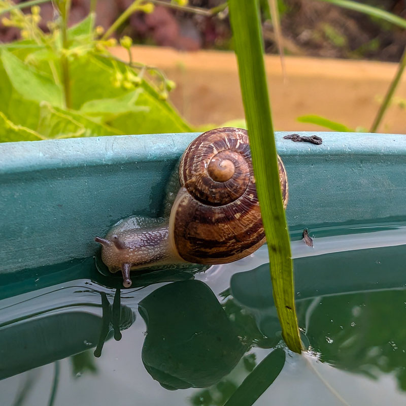 Lastly, after all the rain this week, I genuinely didn’t expect to see a snail (Helix aspersa or similar) taking a leisurely drink at the edge of the bird bath. Gulping down water with an almost comical seriousness. I’m still wondering, with mild awe, how long it took him to climb all the way up there! What a world.