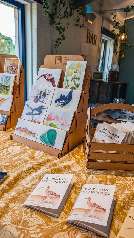 The collection features 14 different collectable pin badges, each one showcasing a Champion Species of the Forest of Bowland. There is also a set of 14 collectable postcards, an A2 poster, and finally, a reproduction of my sketchbook that reveals the behind-the-scenes process of the project.