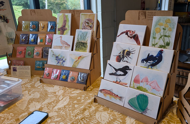 The collection features 14 different collectable pin badges, each one showcasing a Champion Species of the Forest of Bowland. There is also a set of 14 collectable postcards, an A2 poster, and finally, a reproduction of my sketchbook that reveals the behind-the-scenes process of the project.