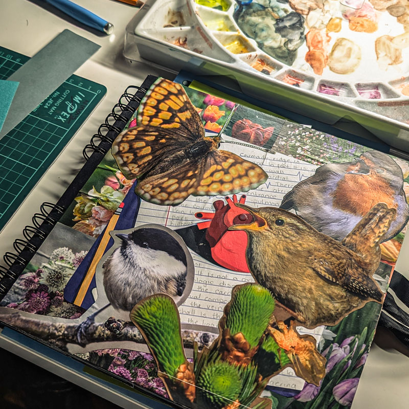 My latest self-directed project has me working through the state of UK nature, so I’ve been busy cutting, glueing, and arranging scraps from old magazines, newspapers, and leaflets. This scrappy approach to journalling has not only been a fantastic outlet for my creativity but has also proven to be surprisingly useful. As I’m currently in the middle of brewing up something new.