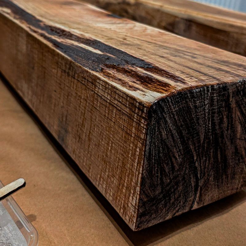 I’ve been wrestling with two pieces of reclaimed oak M and I salvaged about four years ago. When I moved into this house, I knew what they could be. I’ve been determined to turn them into new mantelpieces.